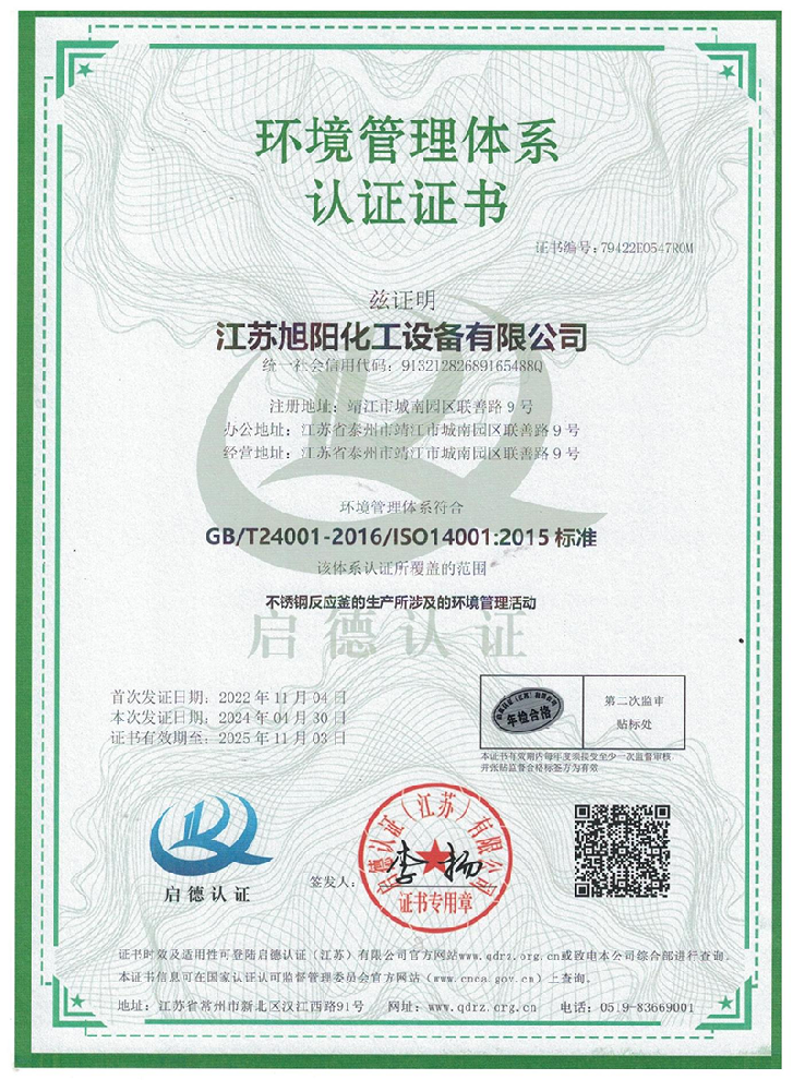 江蘇旭陽化工設備有限公司專業從事各類化工、環保、制藥、發酵、食品、新材料、鋰業等項目設計、制造及壓力容器的生產制造,是一家集研發、生產和進出口貿易于一體的高科技企業。